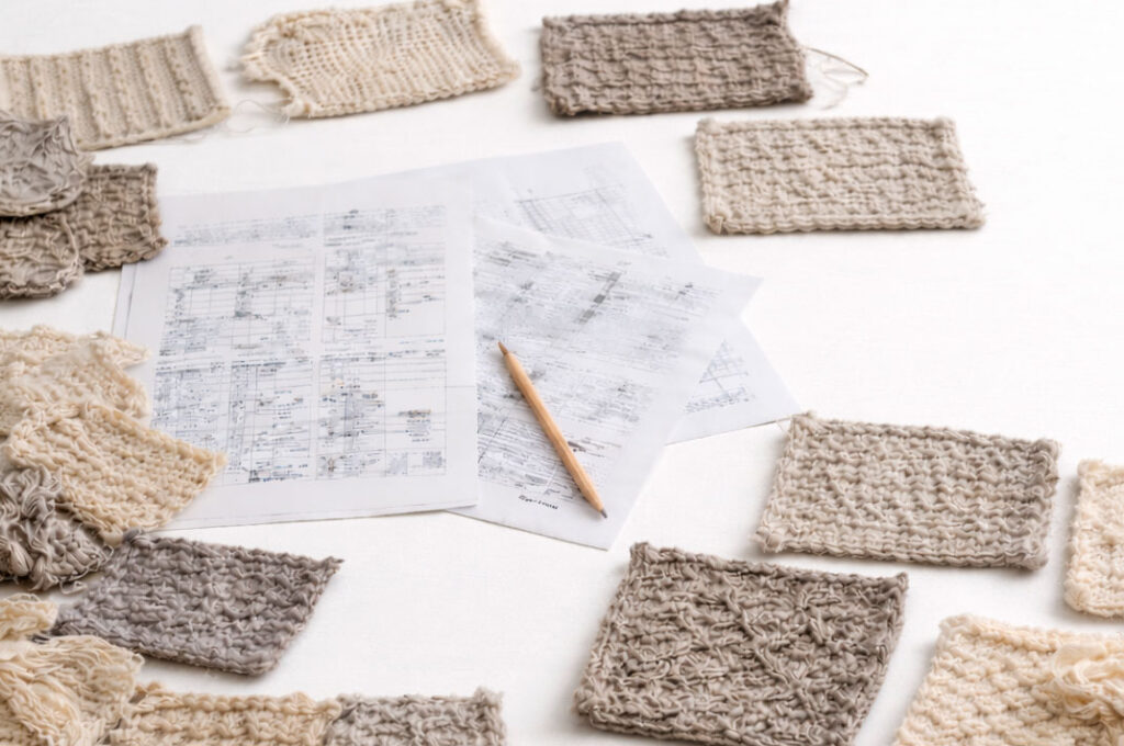 The studio operates as a space for research and development, where knitwear and woven textiles are explored as languages of contemporary design. We support brands and designers throughout the process, from concept and material selection to technical development, production, and export.